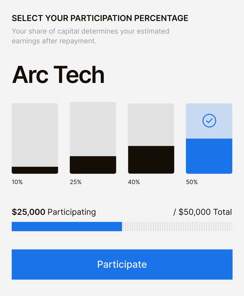 Invest up to 50% in merchant funding alongside our partners.